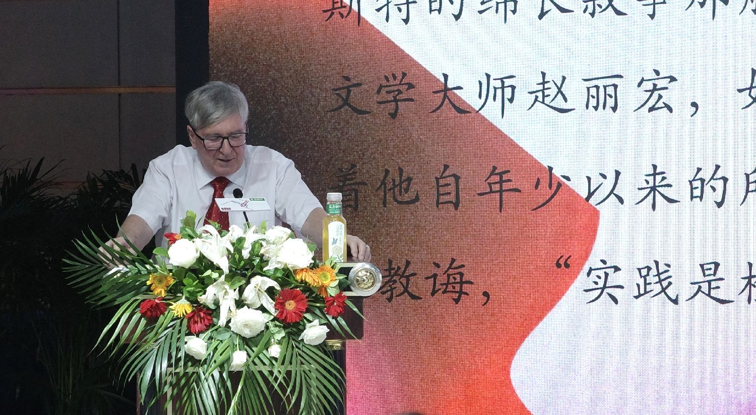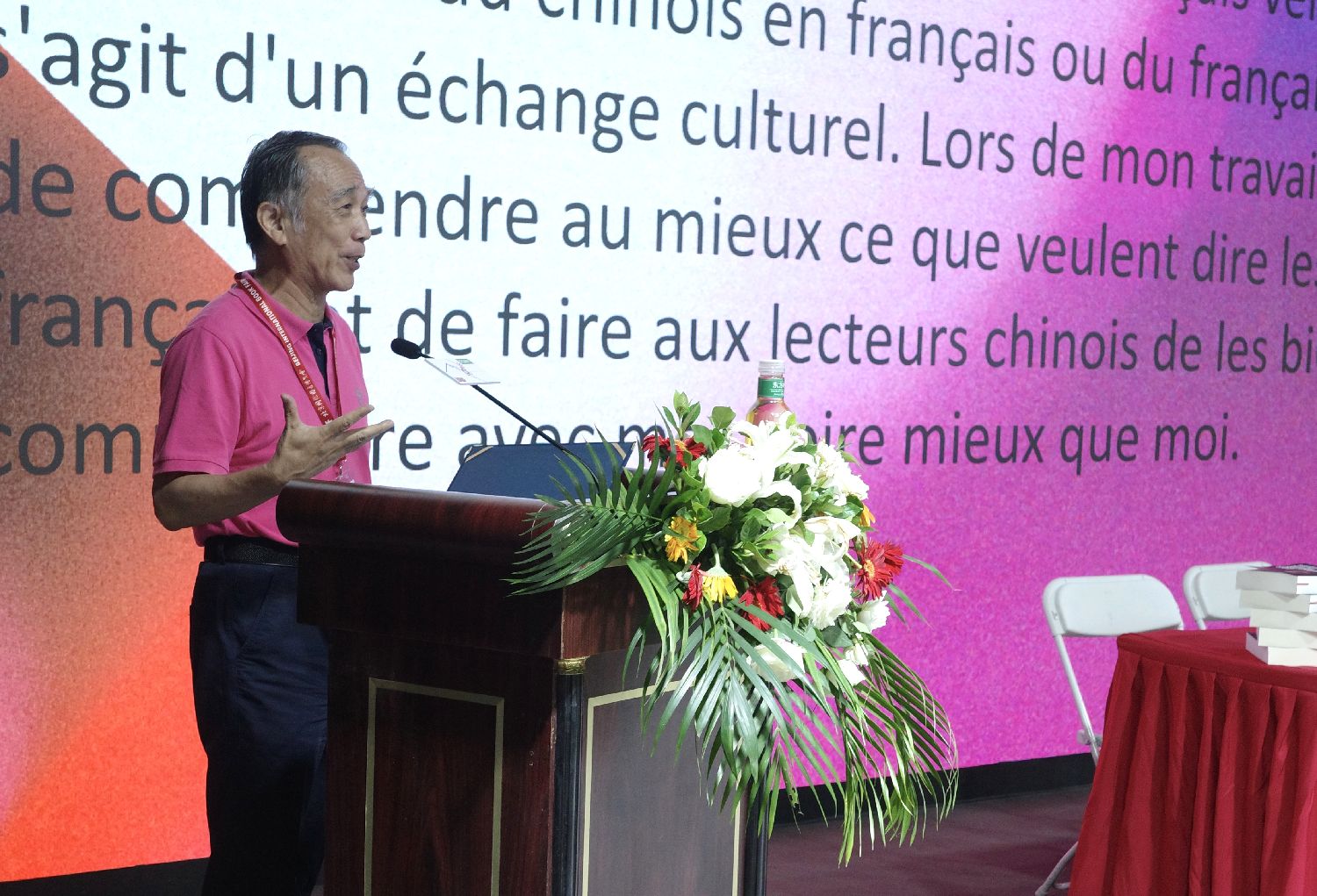 “将中国作家的作品翻译到法国非常重要。”现场嘉宾、法国汉学家、物理化学家贝文江(Dr.Jean Pégouret)对记者表示,许多西方人对中国的印象只有媒体上的负面报道,而当他们真正来到中国、发现中国,“眼中会亮起光芒”。图为贝文江致辞。