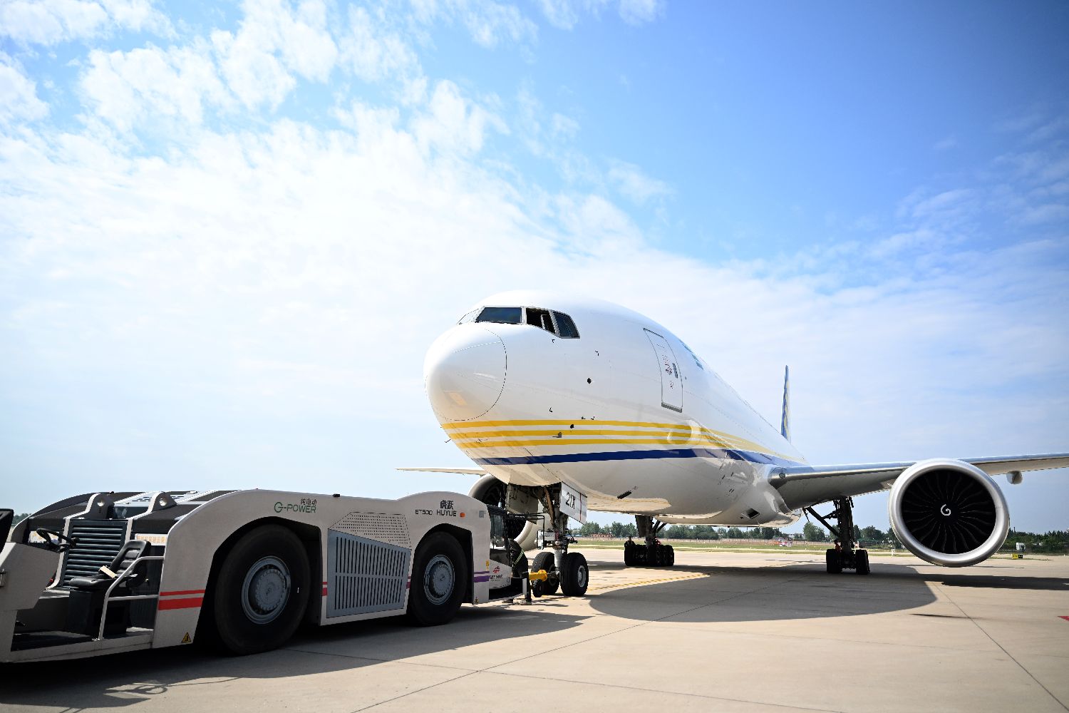 6月23日,中国邮政郑州至卢森堡国际货运航线首航货机在郑州新郑国际机场做起飞前的准备。