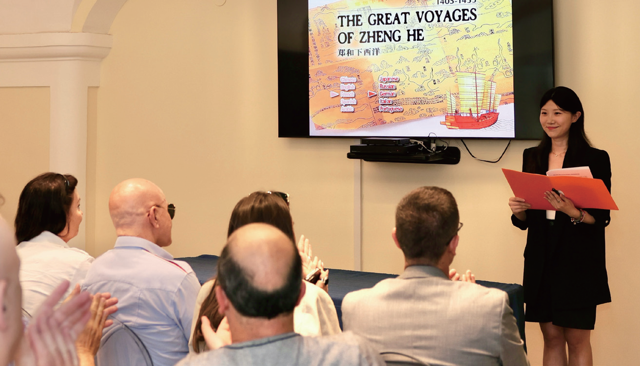 欧时意大利中国文化中心主任卢嘉琦向现场来宾介绍了意大利中国电影节主办单位——欧洲时报文化传媒集团的发展历程,并表示电影节致力于为意大利观众打造一个多元文化的交流平台,以影像为桥,深化文明互鉴。她随后邀请众人一同观看中国纪录短片《郑和下西洋》,以唯美壮阔的画面重温郑和七下西洋的历史足迹,感受这位明代航海家作为和平使者推动中外交流的非凡使命。
