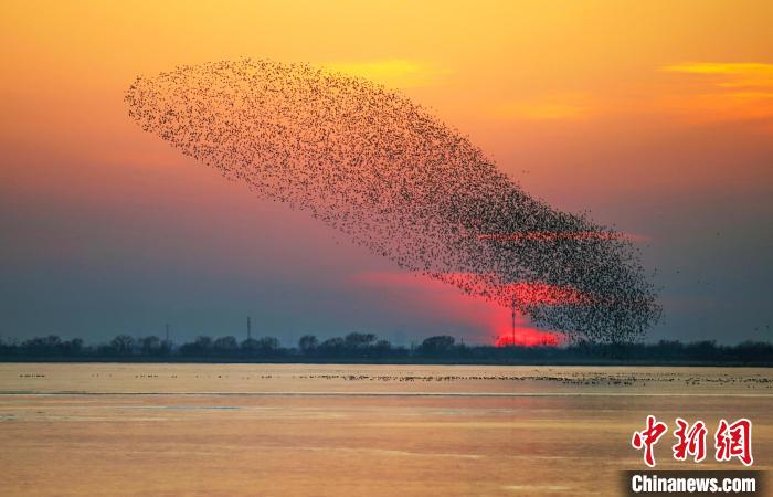 2021年12月30日,衡水湖“鸟浪”。(图片来源:中新社)