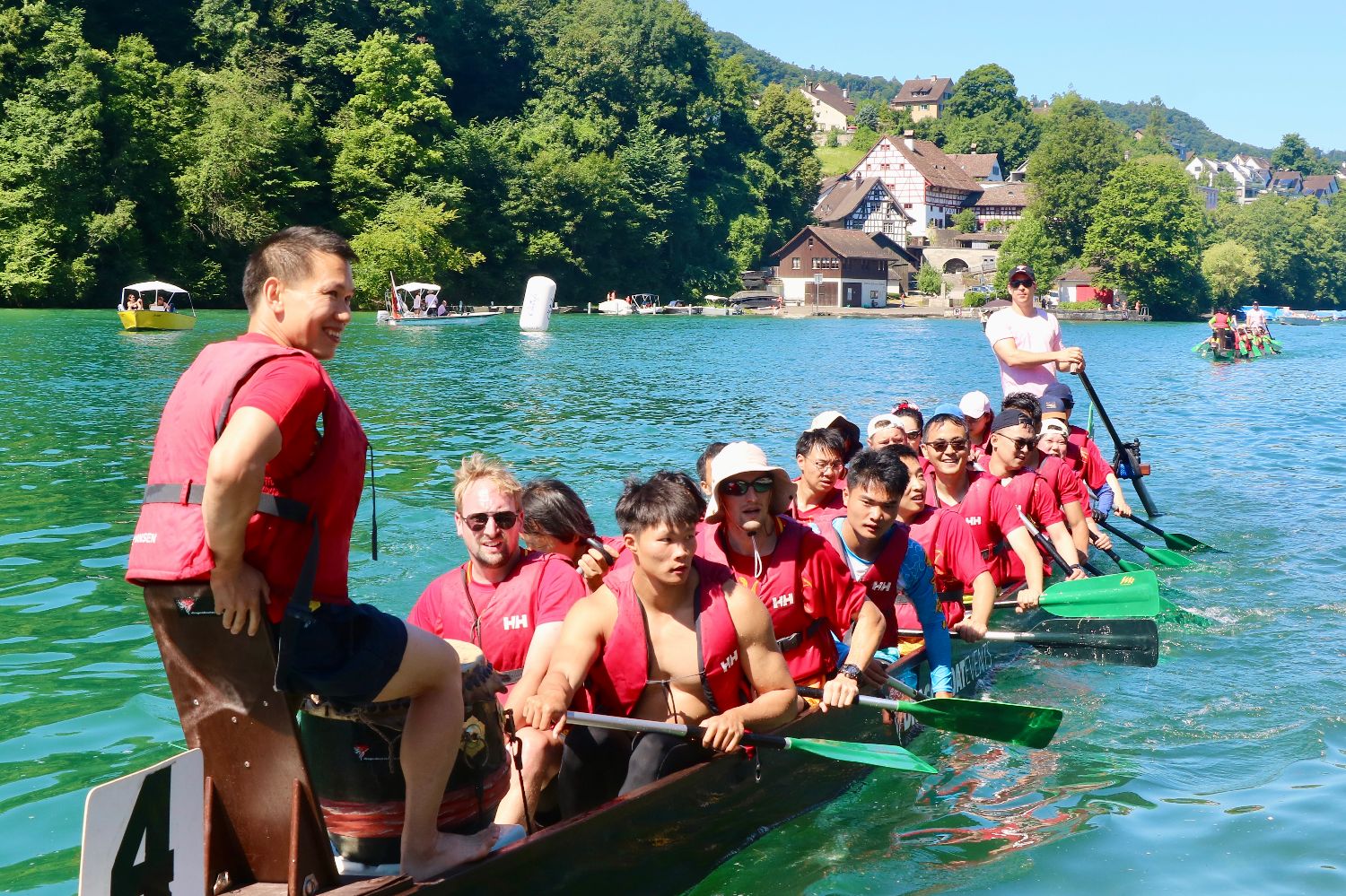 6月29日,在瑞士埃格利绍,瑞士苏黎世州华侨华人组织的“龙战队”参加龙舟赛。