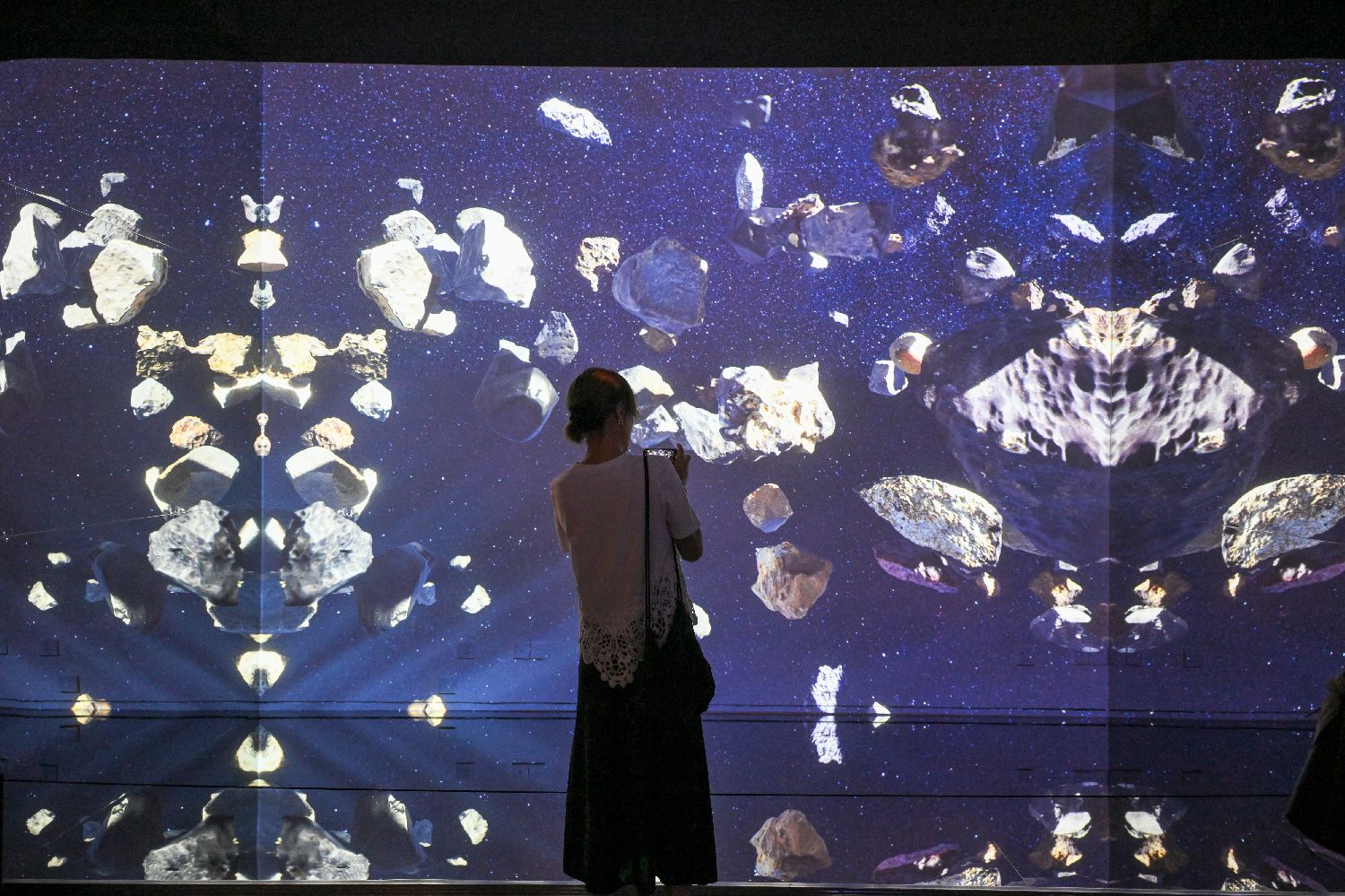 7月2日,观众参观宇宙碰撞交互装置作品。