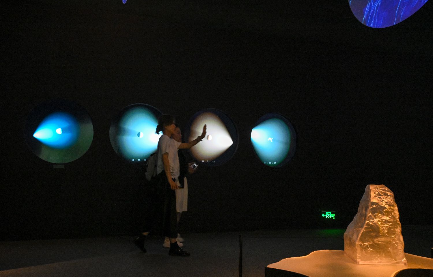 7月2日,观众参观平行时空舱系列装置作品。当日,由中国国家博物馆、瑞士驻华大使馆、瑞士洛桑联邦理工学院主办,清华大学天文系、清华大学美术学院协办的“宇宙考古:时空探索”展览在北京中国国家博物馆开幕。(图片来源:本文图片均自新华社)