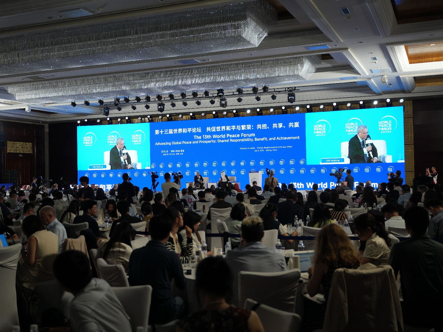7月3日,第十三届世界和平论坛在位于北京的清华大学开幕。本届论坛以“共促世界和平与繁荣:共担、共享、共赢”为主题。(图片来源:陈辉 摄)