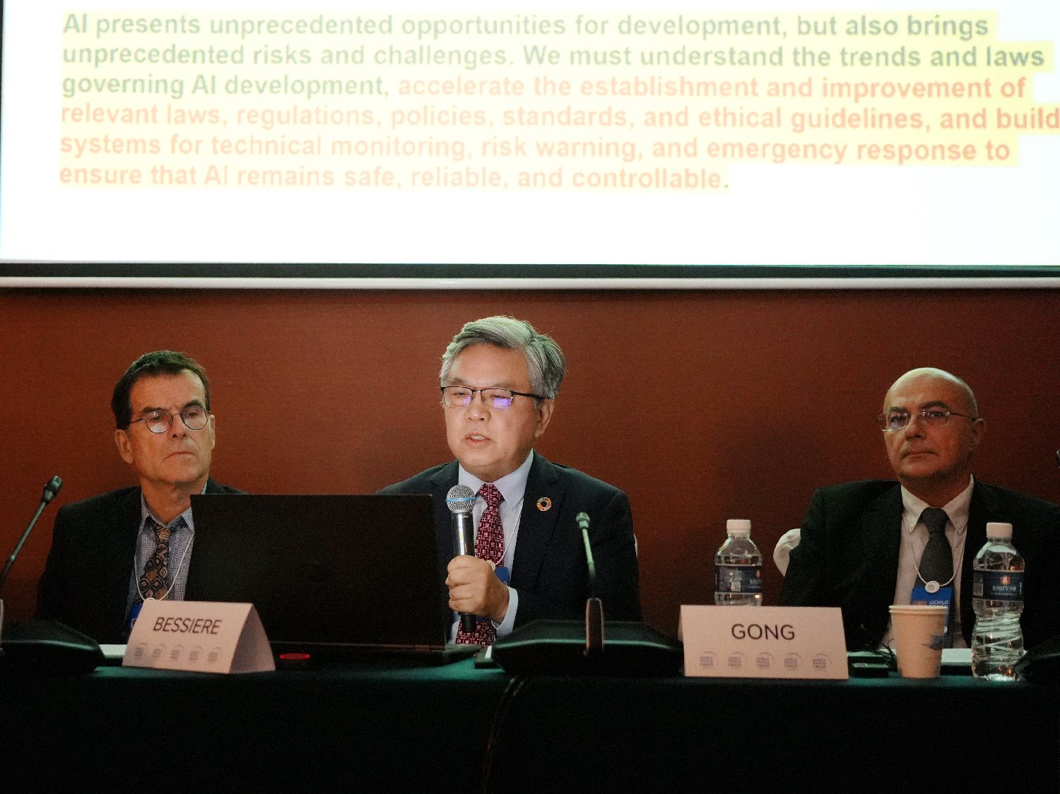 与会现场,龚克还系统梳理了全球治理共识。他列举联合国有关《抓住安全、可靠和值得信赖的人工智能系统带来的机遇,促进可持续发展》决议及《为人类治理AI》(Governing AI for Humanity)宣言,强调国际社会已确立目标——使AI成为助力可持续发展的善的力量。他特别指出,联合国教科文组织193国共同通过的AI伦理框架,将“促进人权与尊严”列为核心原则。