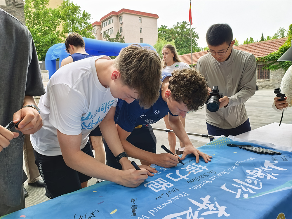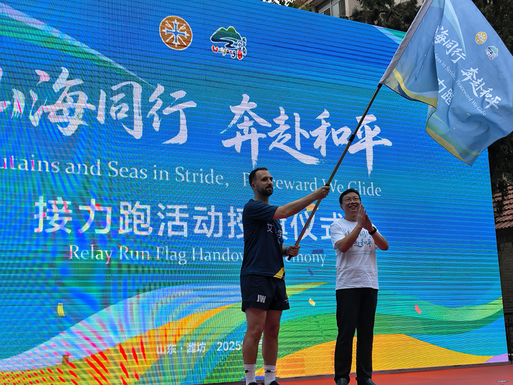 “接力跑活动,不仅是对李爱锐这位伟大国际友人的深切缅怀,更是对中国人民抗日战争暨世界反法西斯战争胜利80周年的庄重纪念。”潍坊市文化和旅游局局长高强在致辞中说道。艾森学院与潍坊共同发起并参与这场跨越“山海”的奔跑,象征着中英两国人民共同珍视和平、追求友谊的坚定步伐。它用体育这一无国界的语言,生动诠释了和平的珍贵与力量,弘扬了历久弥新的国际主义与人道主义精神。