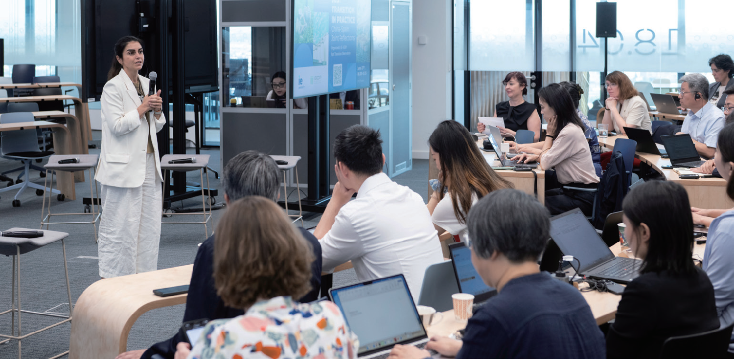 图为IE大学首席环境官伊莎贝拉·德尔·阿尔卡萨尔(Isabela del Alcázar)在论坛做开幕演讲。(图片来源:西班牙IE大学提供欧洲时报西班牙版)