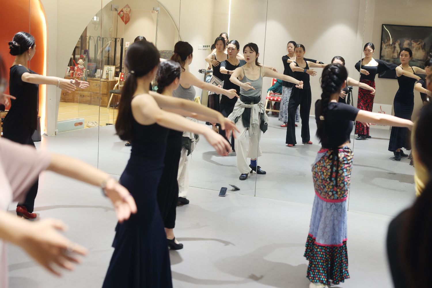她把弗拉明戈的三位一体——歌、舞与吉他——完整引入课堂。“它不是一个固定套路的舞,而是现场的自由协作。你要听懂吉他手想说什么,也要和歌声搭上。”
