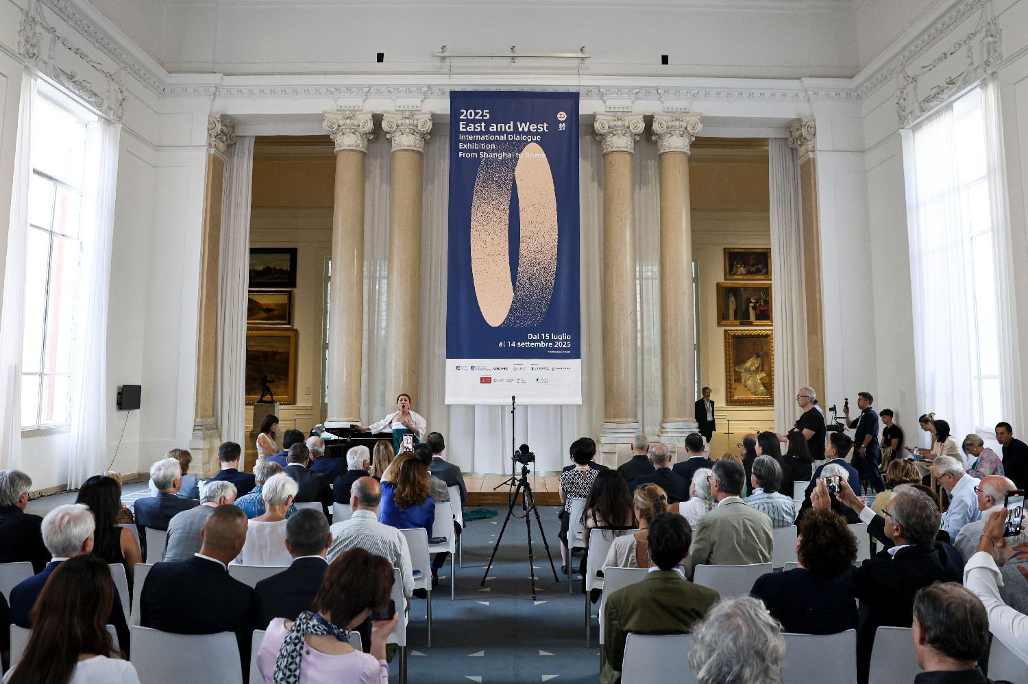7月14日拍摄的“2025无问西东国际对话展:从上海到罗马”开幕式现场。当天,由中国和意大利两国文化机构主办的“2025无问西东国际对话展:从上海到罗马”在位于罗马的意大利国家现当代美术馆亮相。