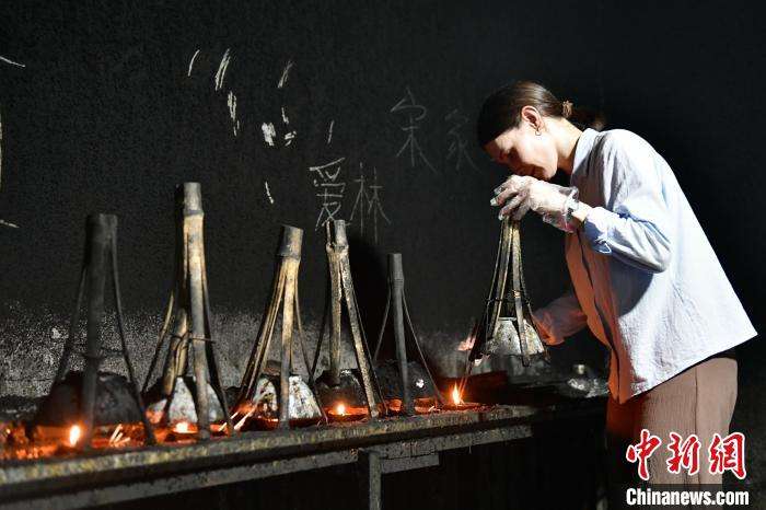 墨厂空气中弥漫着淡淡墨香。爱林跟随该墨厂负责人曹阳走进古朴的厂房,见到工人们正忙着捶打、揉制、入模、描金……