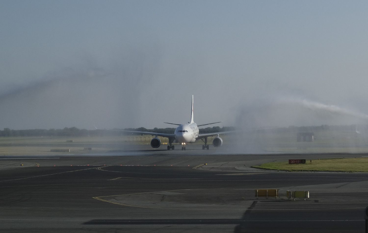 7月17日,在丹麦首都哥本哈根机场,一架中国东方航空客机通过“水门”。当地时间17日19时左右,一架空客330型客机降落在丹麦首都哥本哈根机场,并于21时左右搭载200多名旅客启程返回上海。这标志着中国东方航空公司正式开通上海至哥本哈根航线。 (图片来源:本文图片均自新华社)