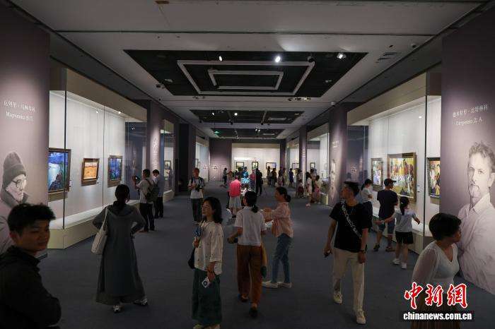 7月18日,展出的叶甫盖尼·木高夫尼油画作品吸引参观者。