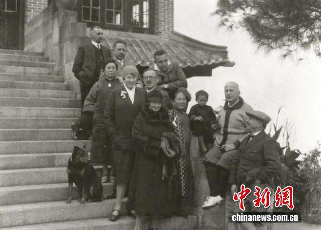 保罗·阿思密(右二)与家人和朋友们在重庆南山故居门前。(图片来源:中新社)