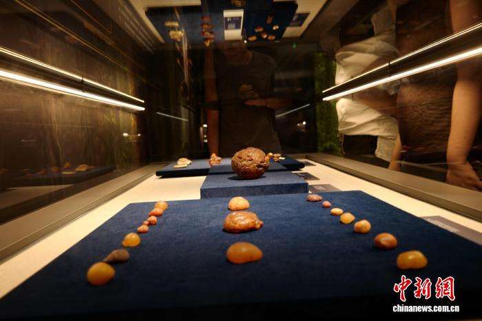 8月5日,“凝望时光——波兰琥珀文化艺术展”在河南博物院持续展出。此次展览汇聚近千件(套)波兰琥珀珍贵展品,时间跨度从石器时代至近现代,全景呈现波罗的海琥珀的漫长发展历程、文化艺术特色以及中西方文化的交流融合,让游客在触摸时光之美的同时,见证琥珀文化如何以独特韵致融入人类文明长河。图为展出的琥珀展品。(图片来源:本文图片均自中新网)
