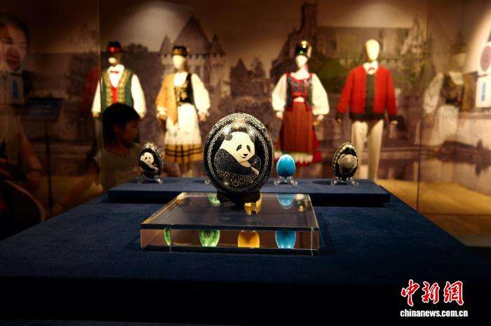 展出的波兰蛋雕作品。7月25日,“凝望时光——波兰琥珀文化艺术展”在河南博物院开展。