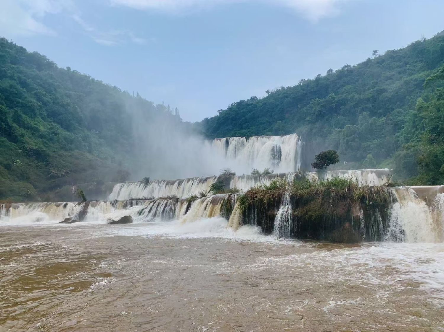 云南省曲靖市罗平县九龙瀑布最近迎来丰水期,长约4公里的河道上形成壮观的十级瀑布群。在最为壮观的“神龙瀑”附近,有一座中意缔结友好瀑布纪念碑,讲述着两条相隔万里的飞瀑背后的中意友谊故事。图为2025年7月16日拍摄的云南省曲靖市罗平九龙瀑布丰水期景象。 “两处自然奇观不仅成为我们友好关系的象征,更成为联结我们两地的文化桥梁。”近日,一封来自意大利贝尔加莫省瓦尔邦迪翁市的信函,让以飞瀑为纽带的中意友谊再度升华。瓦尔邦迪翁市长沃尔特·塞尔伯尼在信函中讲述了友好瀑布缔结后的丰硕成果,也传递出对未来继续深化情谊的期盼。(图片来源:本文图片均自新华社)