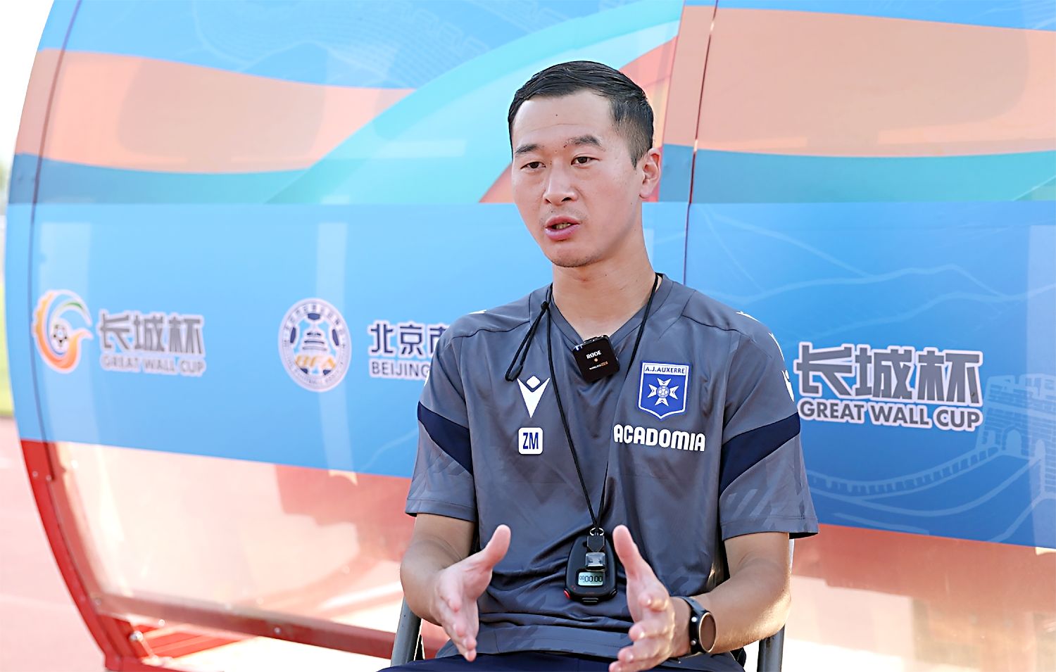近日,法国欧塞尔俱乐部U18梯队主教练明智在北京接受记者采访,他此次以助教身份带领法国欧塞尔俱乐部U16梯队参加2025年第十届长城杯国际青少年足球邀请赛。(视频来源:卞戈 摄)