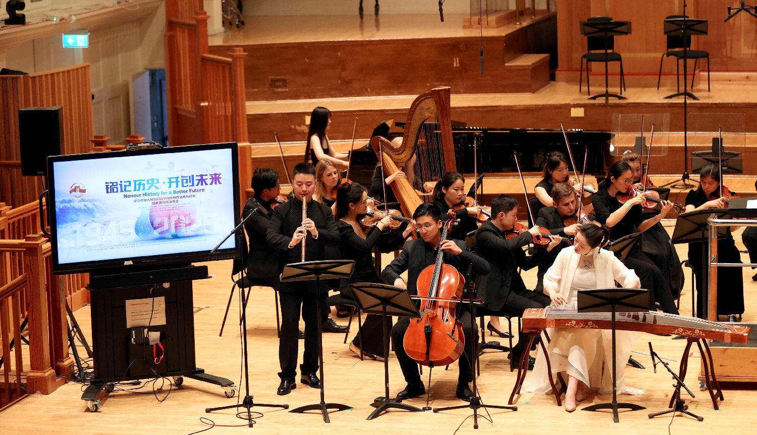 8月28日晚,中外音乐家在英国伦敦皇家音乐学院举办“铭记历史·开创未来”主题音乐会,纪念中国人民抗日战争暨世界反法西斯战争胜利80周年。