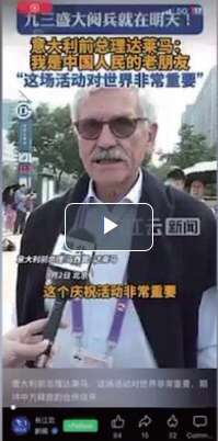 事实上,一段在阅兵活动前夕拍摄的视频也在社交媒体广泛传播。画面中,戴着墨镜、肩披毛衣的达莱马以意大利前总理的身份接受中国媒体采访。