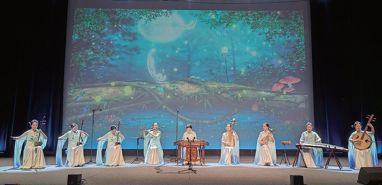 活动上,杭州歌剧舞剧院“西子国乐”民乐团的艺术家们带来了精彩演出,15个曲目的编排兼具经典性、地域性与艺术性,生动传递出中华文化的深邃底蕴与时代精神。《苏堤漫步》仿佛将西湖的潋滟波光带到地中海畔,《天山之春》带来新疆浓郁的民族风情,生动诠释新疆各族人民美好生活的动人图景。