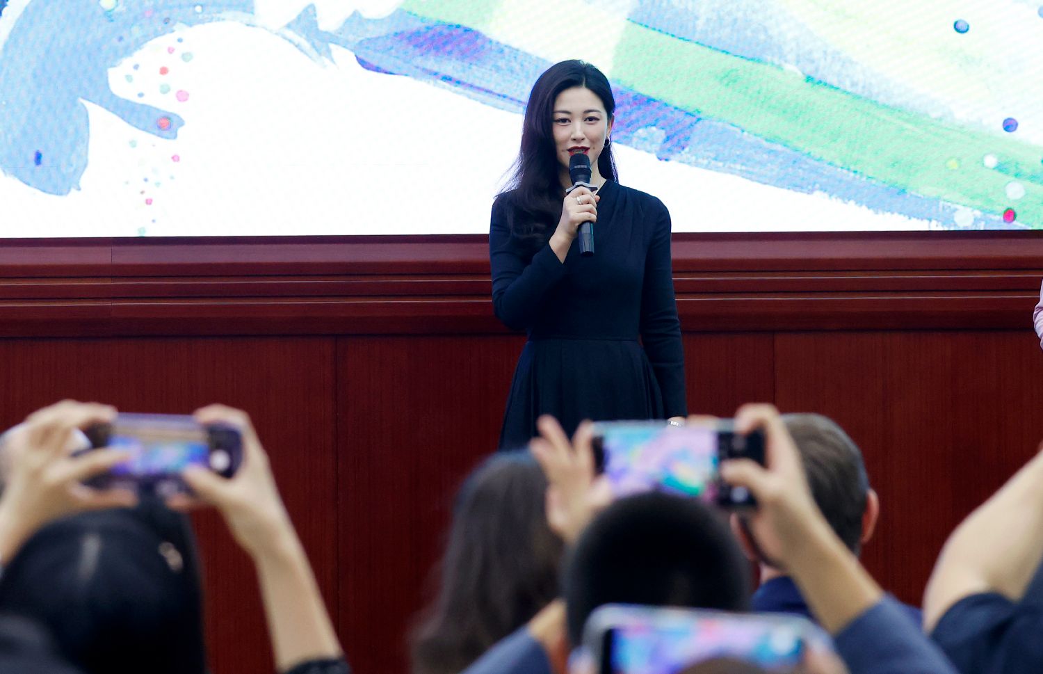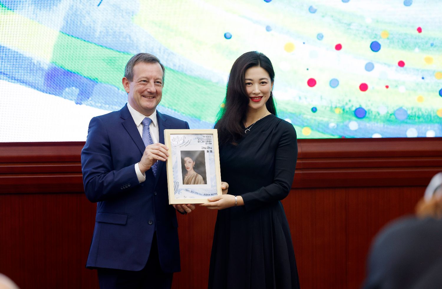 2025年9月22日,中国女演员朱珠获颁第十二届中法环境月推广大使证书。当日,以“蔚蓝星球,绿动未来”为主题的第十二届中法环境月开幕式在北京举行。本届环境月强调海洋与陆地生态系统的紧密联系,呼吁通过可持续解决方案和集体行动来应对本世纪的生态挑战。(图片来源:本文图片均由卞戈 摄)