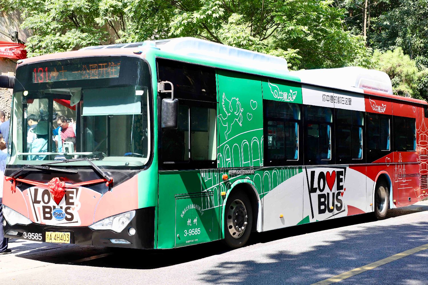 2019年8月7日七夕节,浙江杭州,寓意中意两国友谊,推进中国杭州、意大利维罗纳两座“浪漫之都”友好关系的“中意巴士”正式发车。