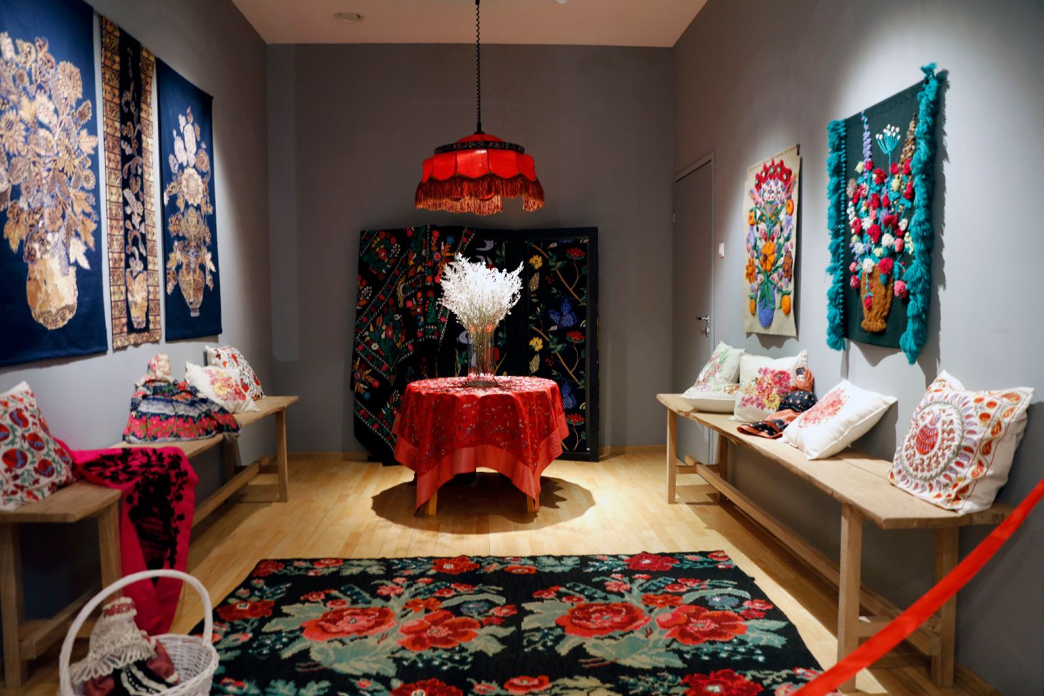 当地时间9月30日晚,莫斯科电影制片厂国立艺术与摄影博物馆,一场汇聚俄罗斯与中国艺术的展览“命运之织”在这里举行。展览首次全新呈现三位俄罗斯杰出女性艺术家的作品,包括绘画、服装、装饰艺术,甚至布料壁画等。其中俄罗斯普希金造型艺术博物馆高级研究员、功勋艺术活动家伊琳娜·扎哈罗娃的作品受到极大关注。