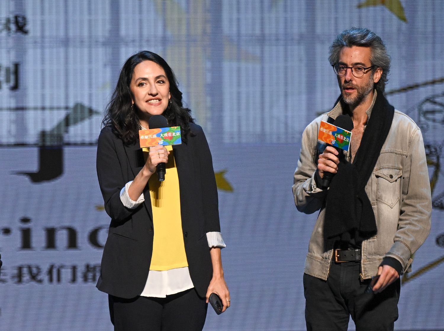 10月12日,在位于北京的中央歌剧院剧场,音乐戏剧《小王子》导演让·贝洛里尼(右)、总制作人安娜出席发布会。(图片来源:本文图片均据新华社)
