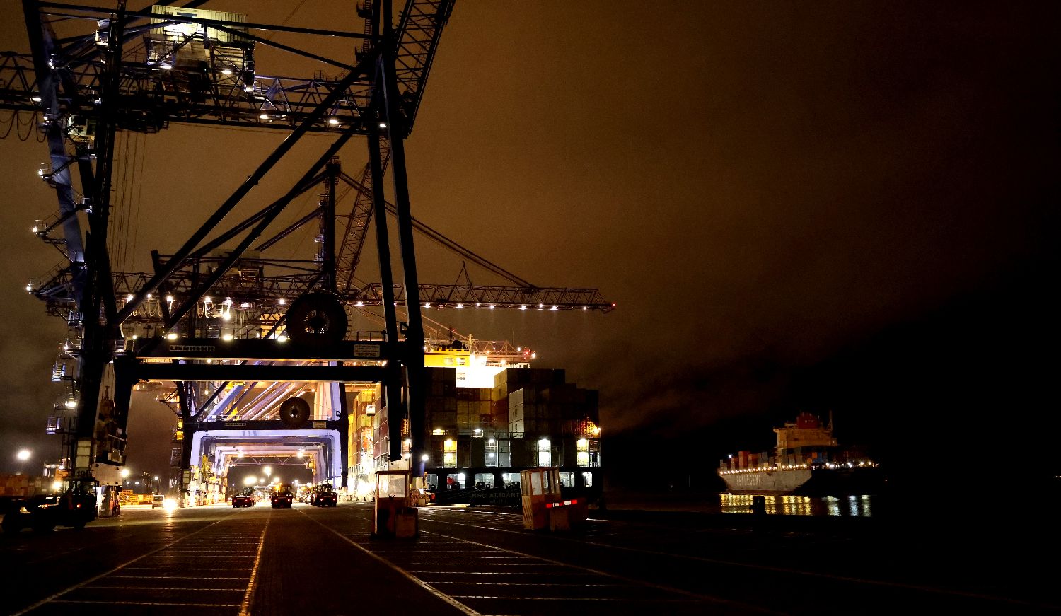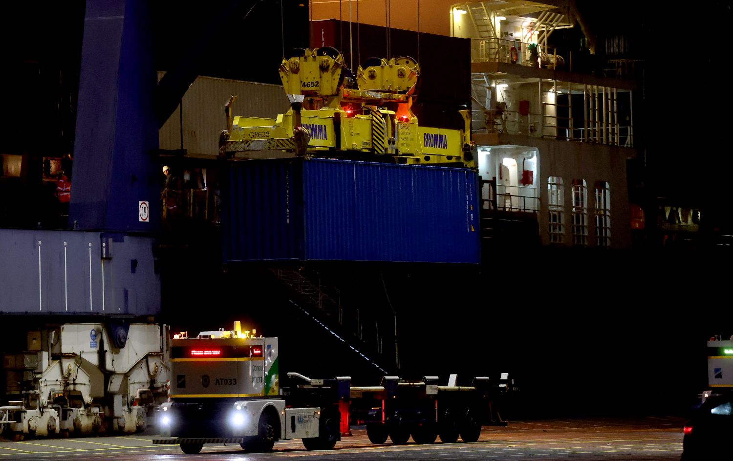 10月13日,中欧北极快航航线首艘货船在英国费利克斯托港停泊卸载集装箱。