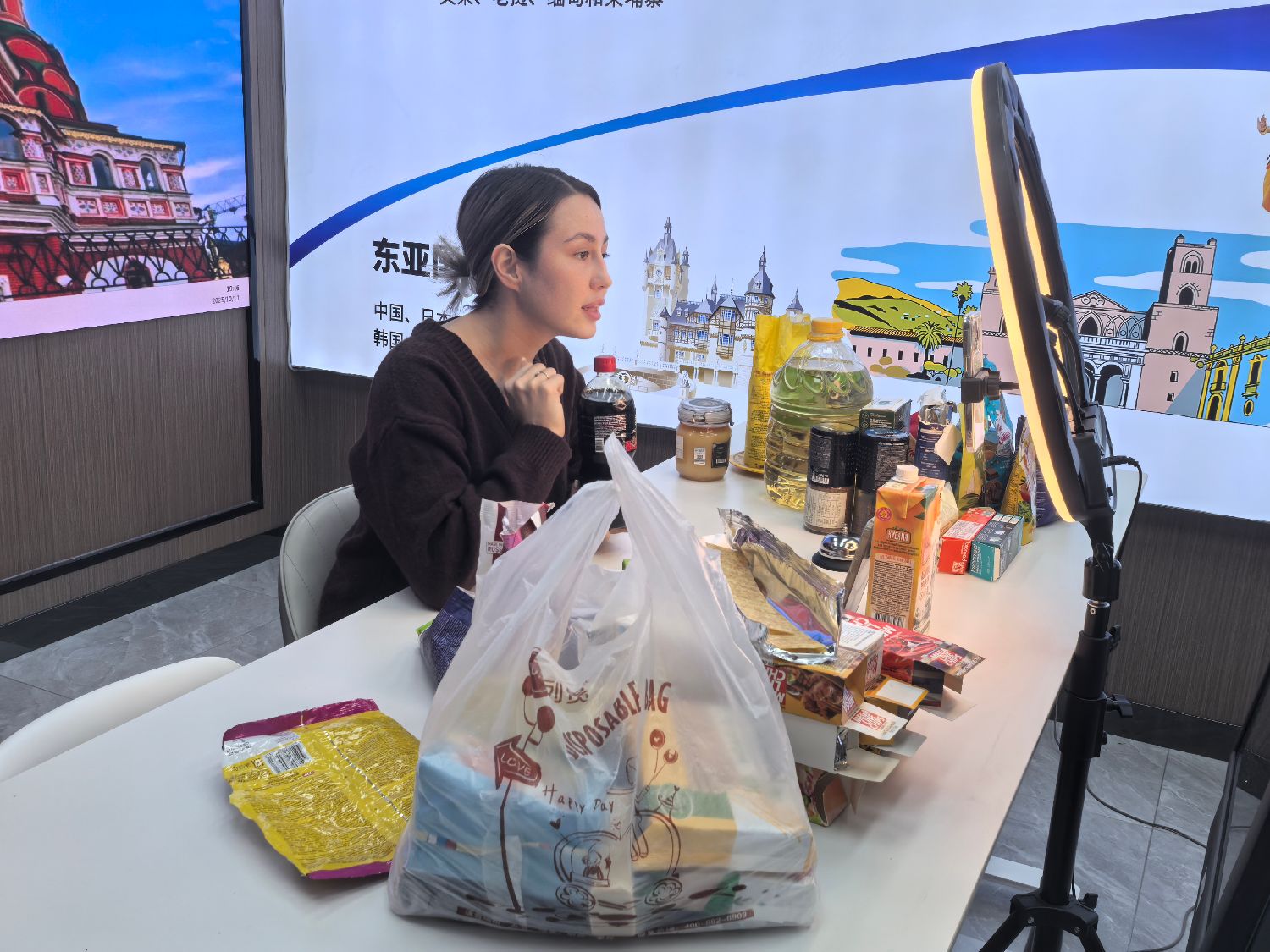 “我喜欢这里,同事们在工作和生活中帮助我很多。”在刚刚过去的国庆中秋假期,喀秋莎通过直播间销售俄罗斯面粉、酱油、葵花籽油等商品,交易金额达40多万元。