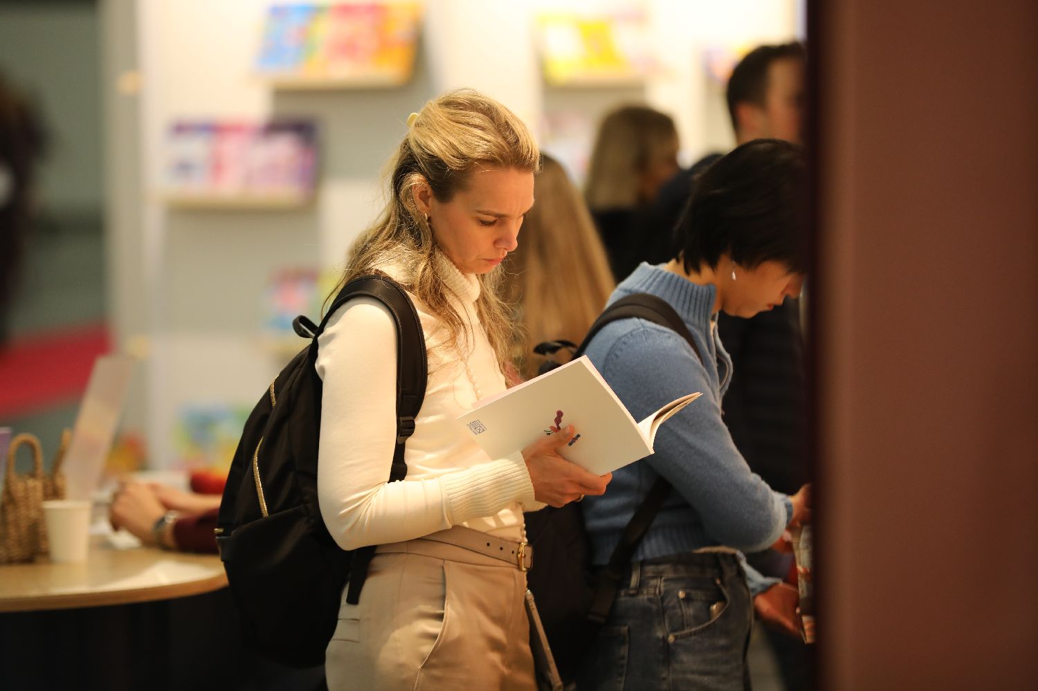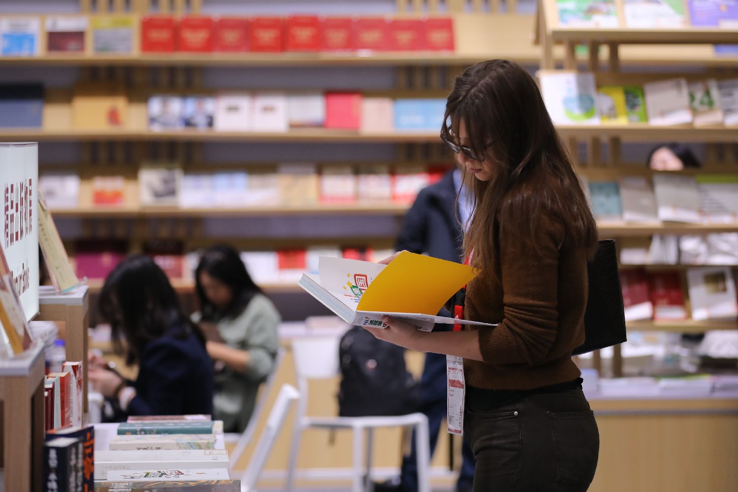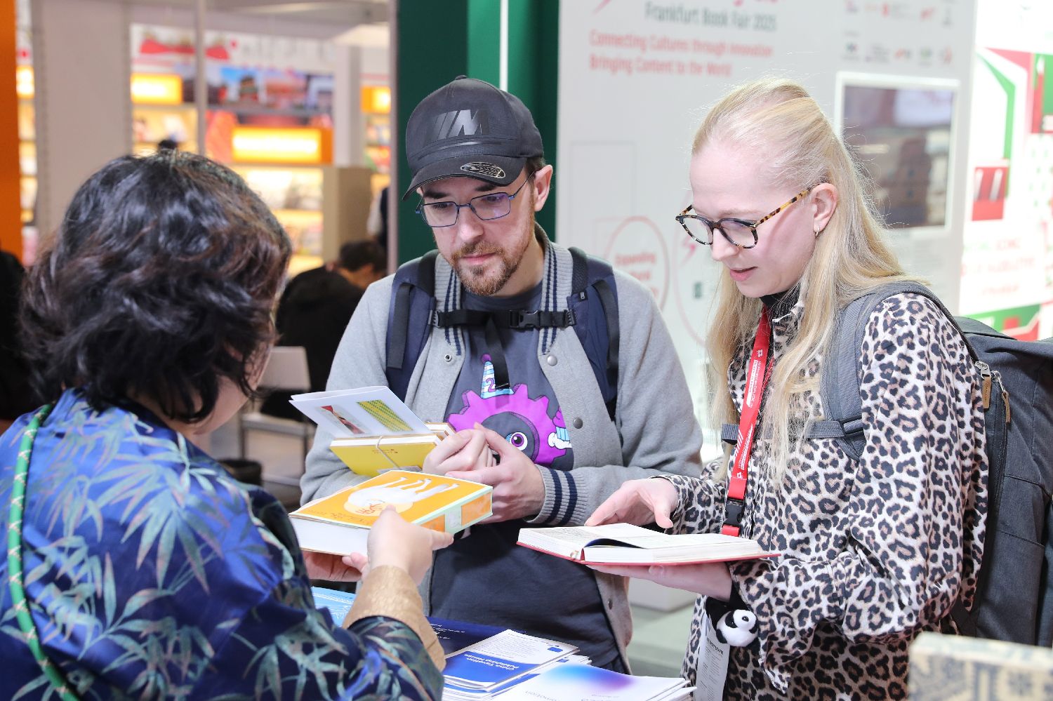 10月16日,读者在德国法兰克福书展上翻阅图书。