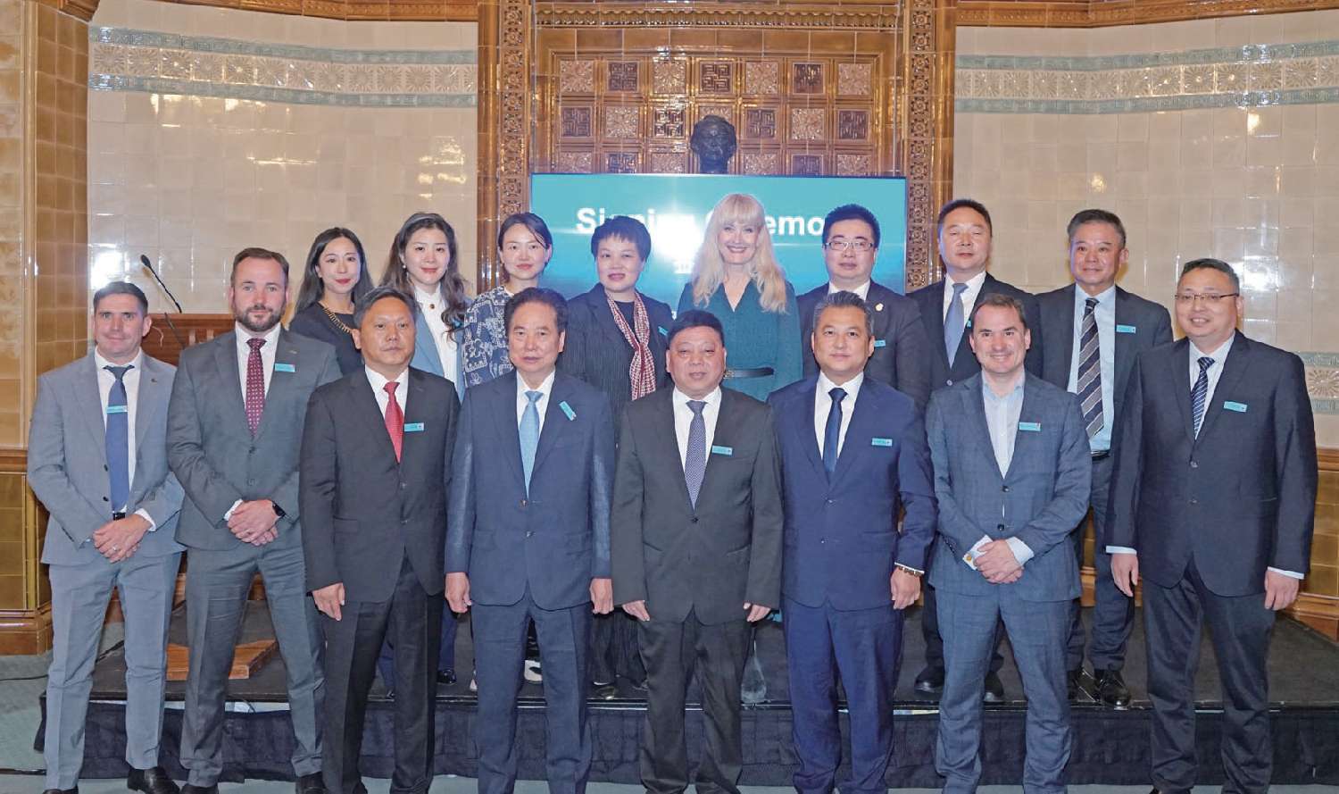 重庆农特产品英国推介会与会嘉宾合照。(图片来源:主办方供图)