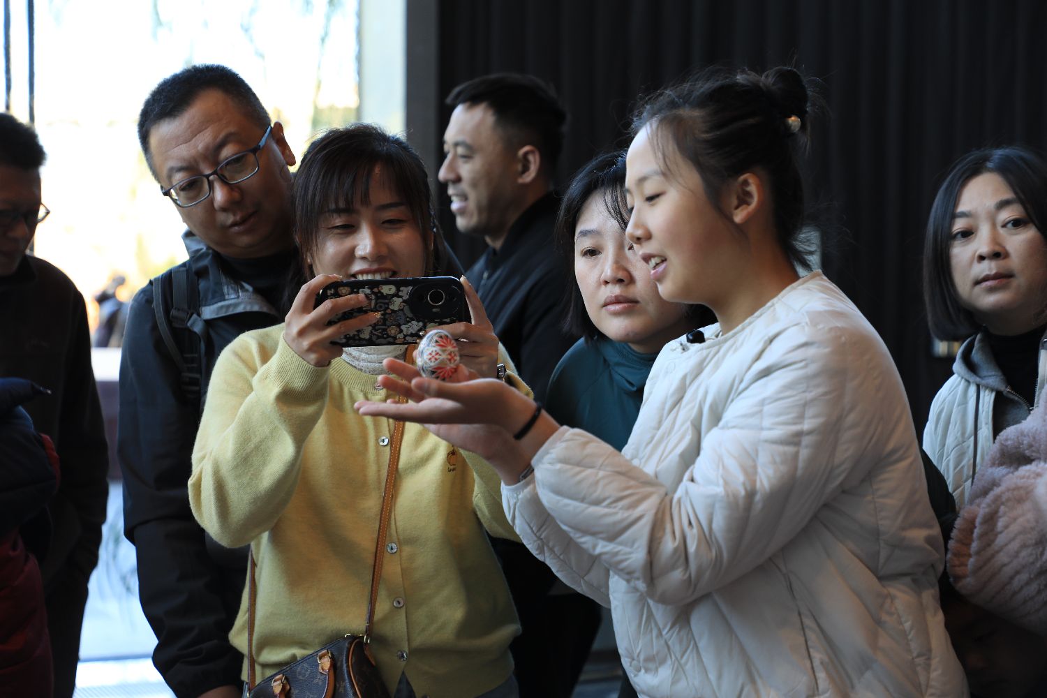 2025年10月19日,购买了彩蛋的参观者向众人展示。