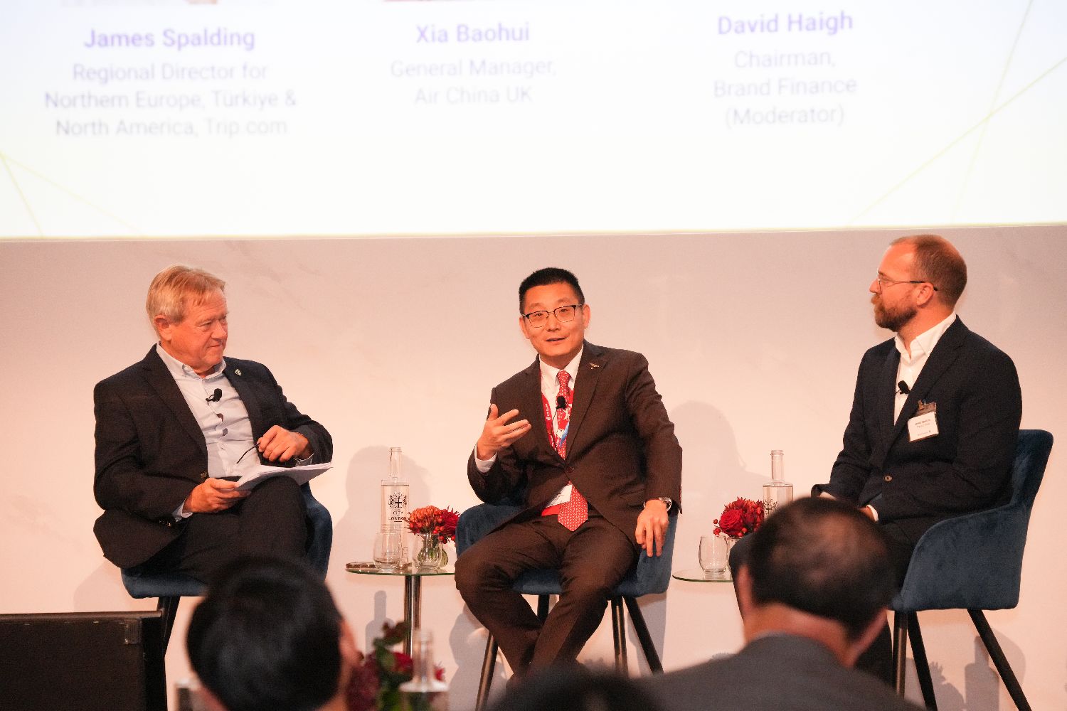 在分论坛“航空与酒店品牌的全球机遇”,中国国际航空公司伦敦营业部总经理夏宝辉与携程集团北欧及北美航旅业务区域总监James Spalding探讨了中国航空与酒店品牌如何在竞争强烈的国际市场中最大化自身优势,迎接挑战。他们以科技创新助力外国游客更便捷地在华出行为案例,揭示了中国品牌通过文化服务、科技创新与交流合作,构建独特的全球竞争力。