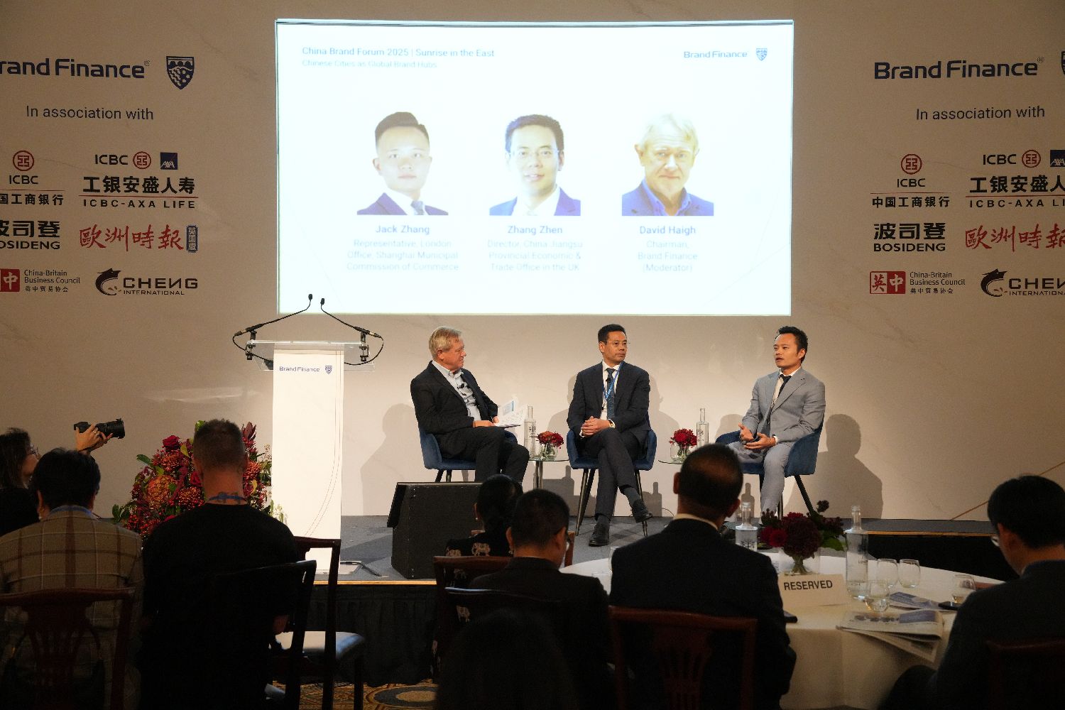 在“中国城市:全球品牌枢纽”的分论坛上,上海市商务委员会驻伦敦代表处代表张骏、中国江苏省经贸代表处主任张振分别介绍了两地在文化、旅游、创新及知识产权等方面的独特资源。上海以“创新”见长,中西文化融汇于此。江苏地大物博、历史底蕴浓厚,是中国新能源产业的孕育基地。沪苏两地联系紧密,“强强联合”可优势互补、相得益彰。他们探讨了如何通过整合文化、旅游与创新资源,在国际舞台上讲述“城市品牌故事”,从而推动地方品牌集群走向世界。