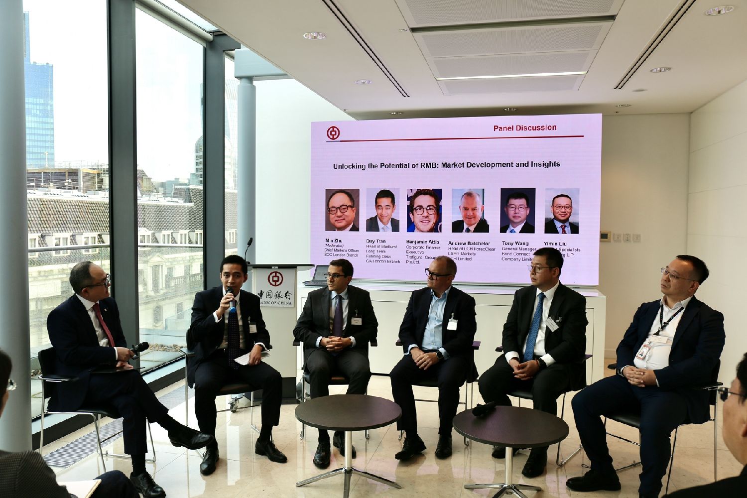 本次活动是中国银行2025年人民币国际化全球系列推广活动的重要一站,旨在进一步推动人民币在跨境贸易与国际投融资中的使用,深化中英及欧洲地区金融合作。活动现场,与会代表围绕人民币在跨境支付清算、贸易结算、投融资服务、外汇交易与风险管理、债券融资等领域的应用展开深入交流,并分享人民币市场发展趋势、金融基础设施合作与产品创新最新进展。
