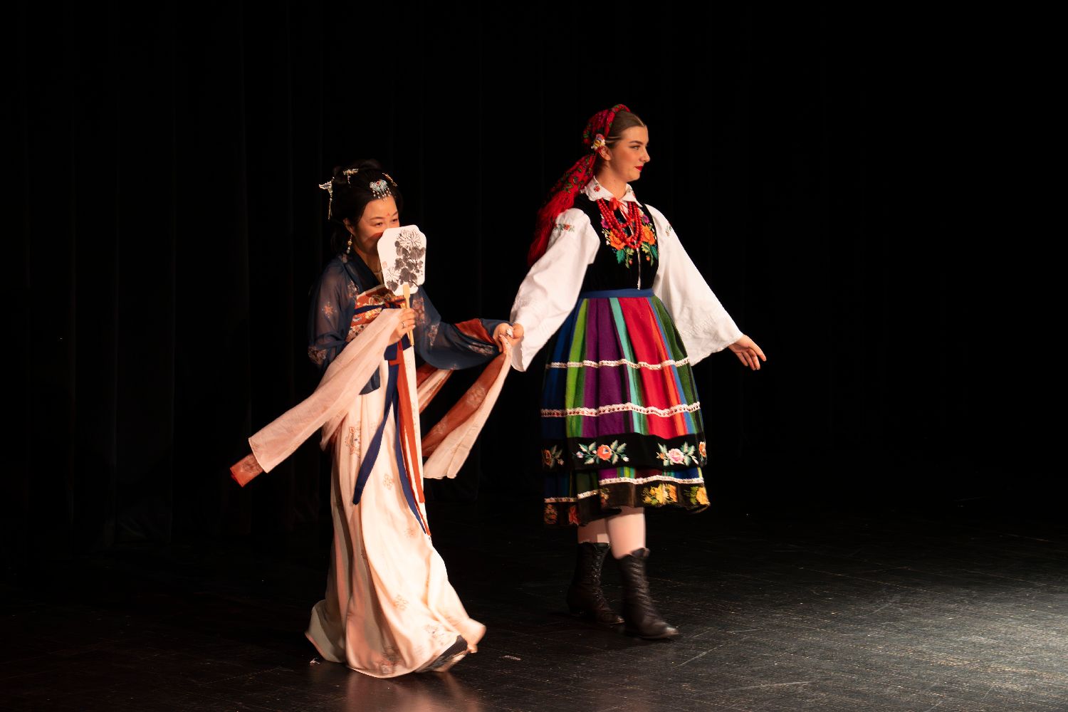 10月26日,在波兰格但斯克大学孔子学院,学院师生在庆祝活动上展示中国和波兰的传统服饰。(图片来源:新华社)