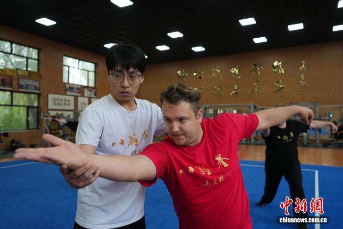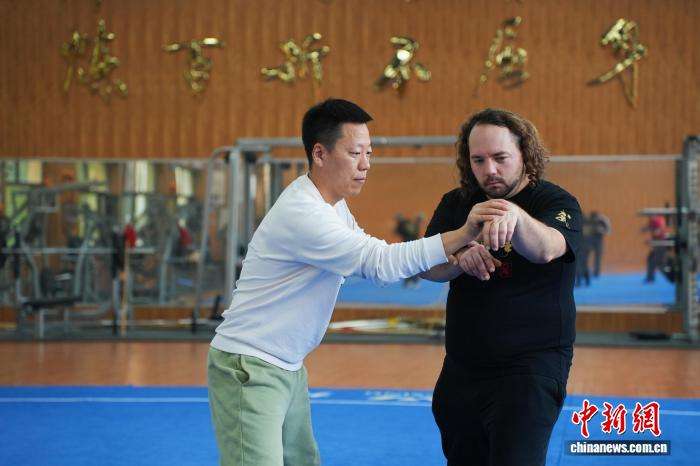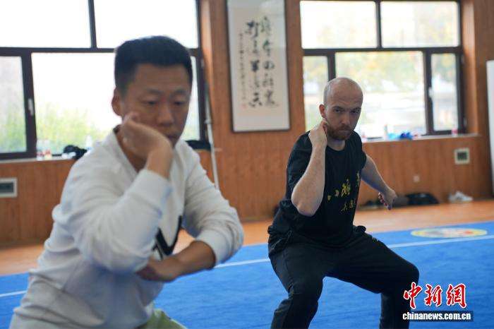 比利时八极拳爱好者正在学习黑虎拳拳术。