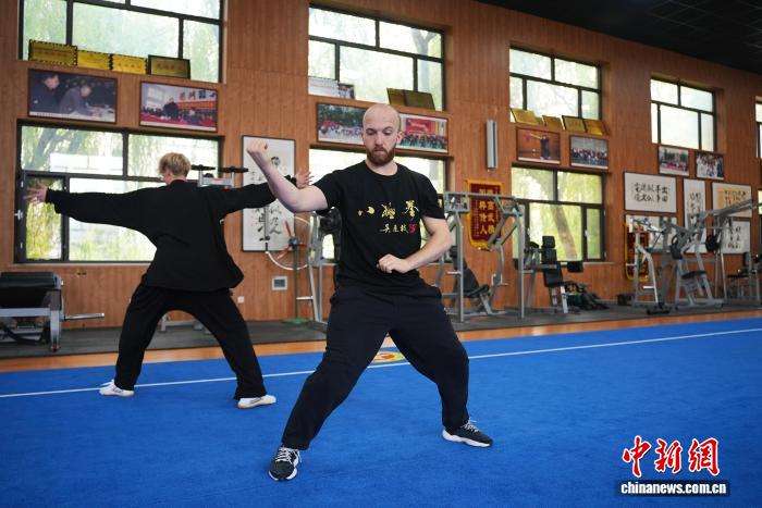 10月30日,在河北省沧州市孟村回族自治县八极拳国际培训中心,6名比利时八极拳爱好者正跟教练习练八极拳。(图片来源:本文图片均自中新网)