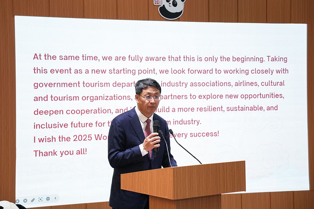 中外文化和旅游交流中心主任张维国致辞说,旅游是传播文明、交流文化、增进友谊的坚实桥梁,更是携手合作、共谋发展、共创价值的全球性事业。全球旅游业的繁荣离不开更加紧密务实的国际合作。为此,中国正以一系列积极的政策举措,主动融入世界旅游发展大潮--持续优化的入境免签政策、不断提升的便利化程度,正是我们深化国际旅游合作、共享市场机遇的诚意与行动。这些举措在积极释放市场活力的同时,也正在为世界旅游业创造新机遇,为全球旅游市场注入强劲的“中国动力”,共同探索,更具韧性、更可持续的旅游业态。