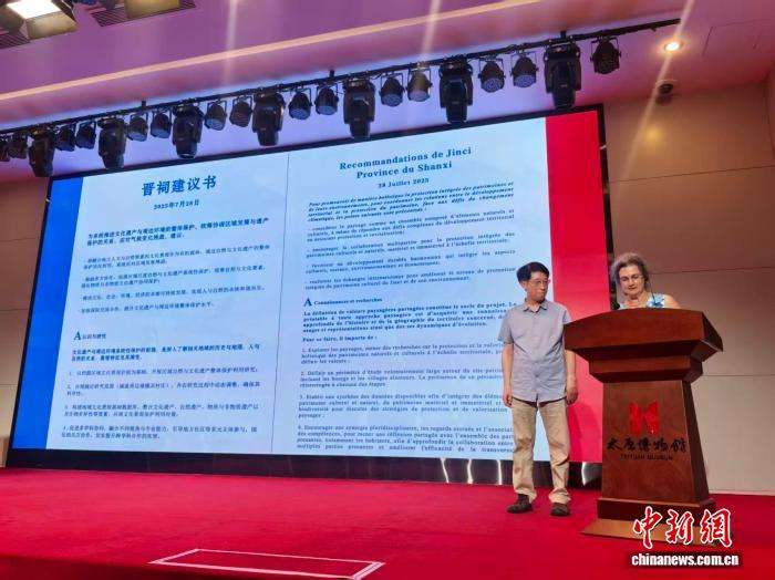 7月28日,中法专家在太原博物馆共同宣读《晋祠建议书》。(图片来源:中新社)