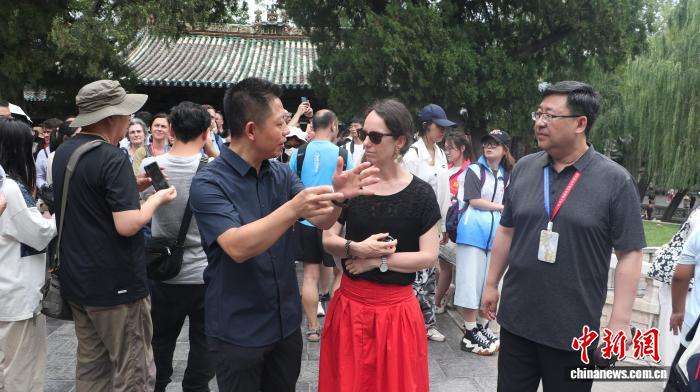 7月24日,中法专家现场调研晋祠。(图片来源:中新社)