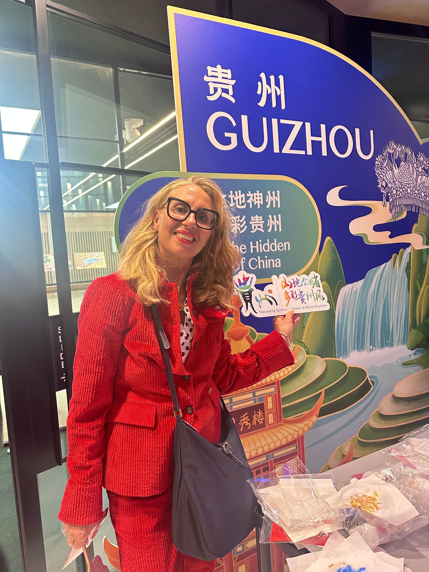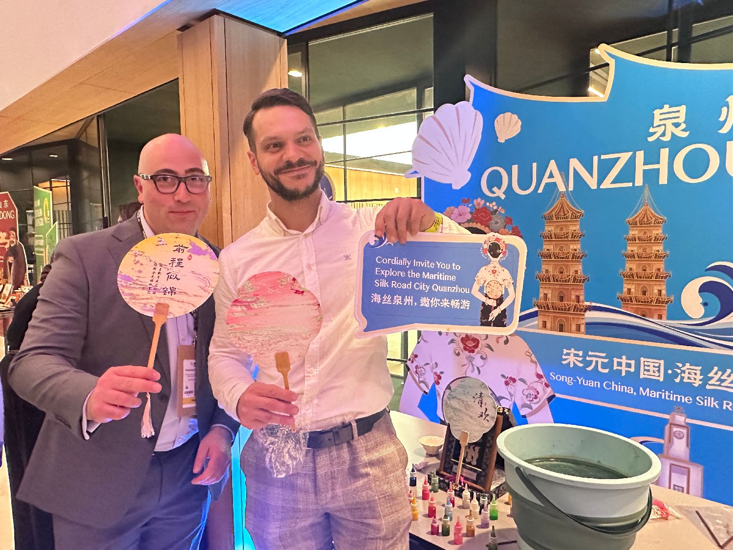 此次活动以现场推介、商务交流、图片展览和非遗互动等多种形式展开,亮点纷呈。悠扬的古筝和飘逸的舞蹈,为观众打造沉浸式视听盛宴;英国旅游达人现身说法,分享在中国美好便捷的旅游经历;主题图片展聚焦中国世界遗产,生动展现中国绚丽的自然风光和深厚的人文底蕴,吸引众多嘉宾驻足观赏;互动体验区营造了生动有趣的交流氛围,嘉宾们在投壶、漆扇、书法、鲁班锁等活动中沉浸式感受中国文化的独特魅力。