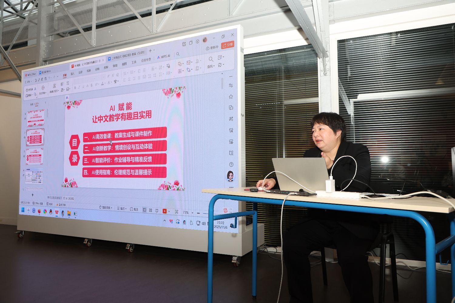 开班仪式上,徐嘉蓉代表法国华文教育协会,接收了王玲芳代表广西名师巡讲团赠送的纪念品。南宁市民主路小学佛子岭校区教学副校长、副高级教师郭小瑜还进行了主题为“AI赋能,让中文教学有趣且实用”的主题讲座,向法国华文教育工作者介绍了中国人工智能产品在教学工作中的优势和教学实用案例。