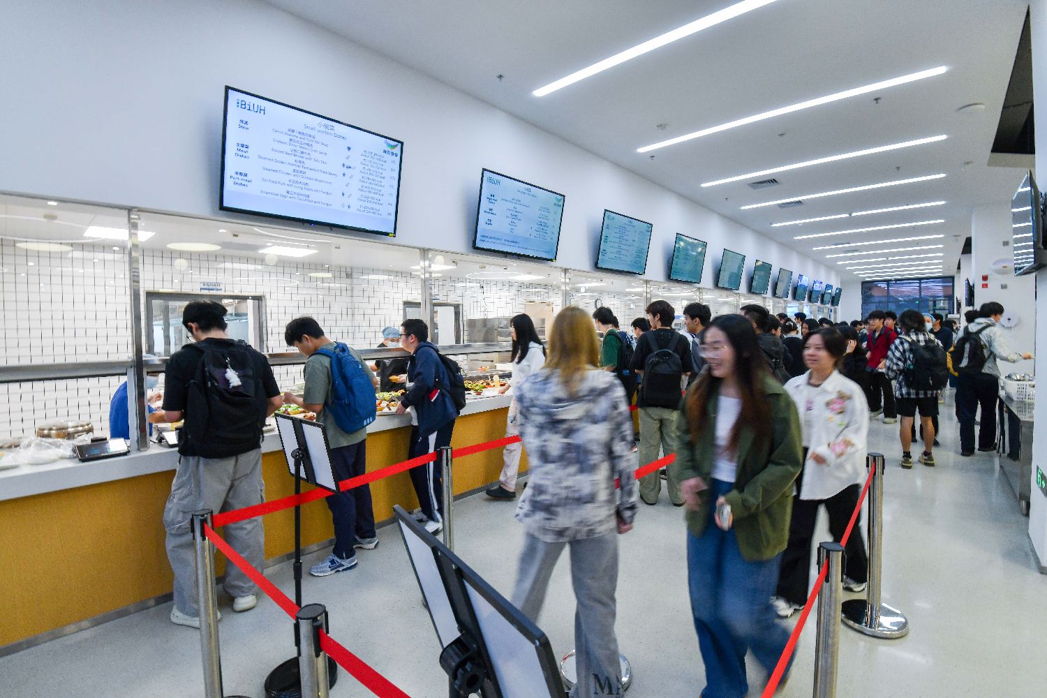 此处校址一期占地约300亩,欢迎中心、公共教学楼、实验实训楼、学生中心、学生宿舍、教师公寓、运动场等各种设施一应俱全,能容纳2500多名学生。图为11月12日,海南比勒费尔德应用科学大学大门。
