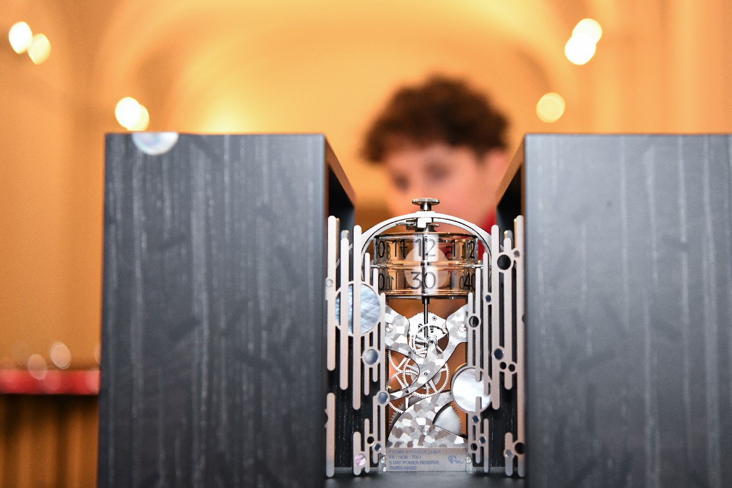 11月13日在瑞士日内瓦拍摄的日内瓦高级钟表大赏展览上的创意钟表。