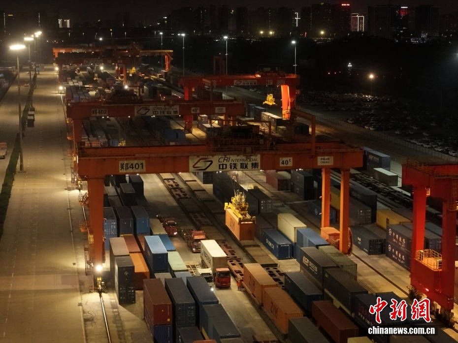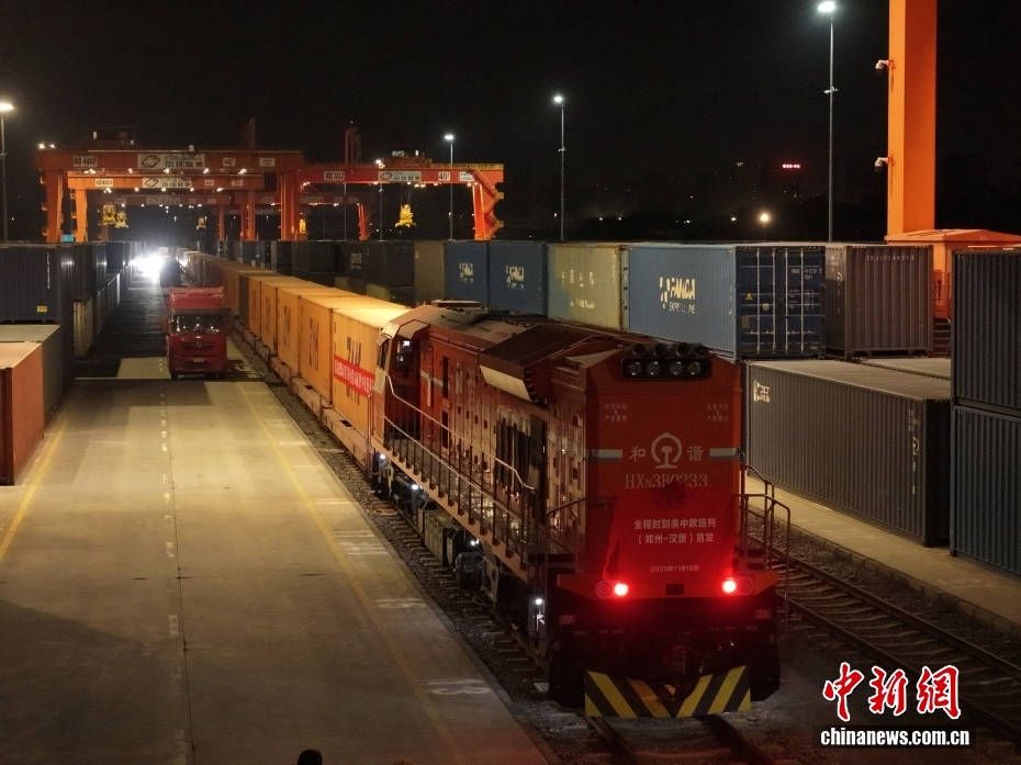 11月18日,一列满载机械设备、日用电器、服装、模具等货物的全程时刻表中欧班列从中国河南郑州发车驶向德国汉堡。这是中国首列直达德国汉堡的全程时刻表中欧班列。
