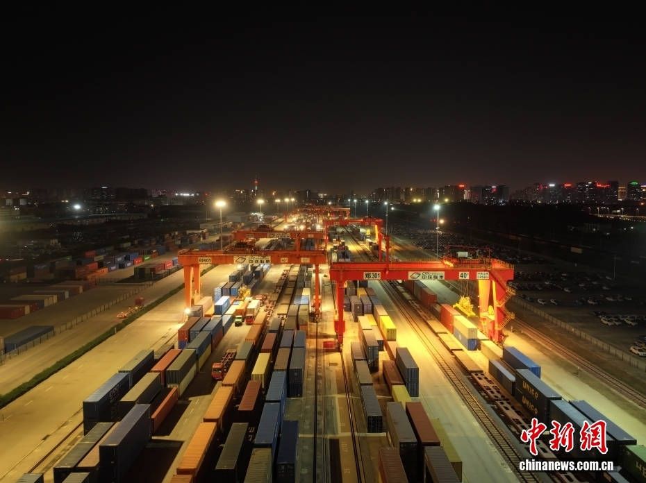 全程时刻表中欧班列集装箱吊装现场。(图片来源:中新网)