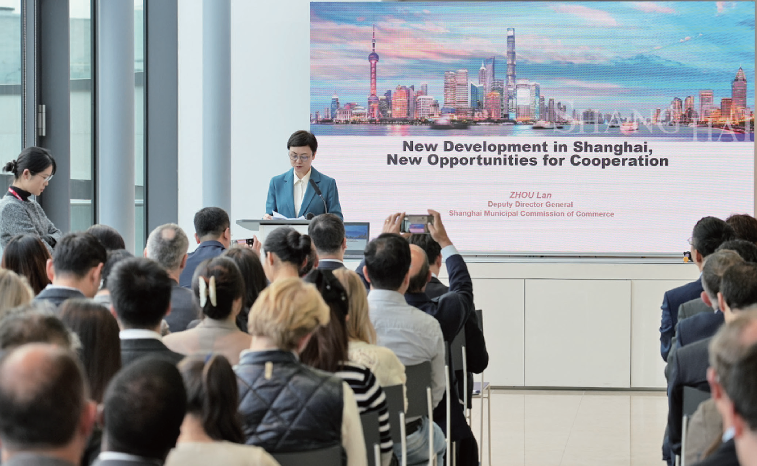 上海市商务委员会副主任周岚发表讲话。(图片来源:本文图片均由欧洲时报卢天爱、姜景涵 摄)