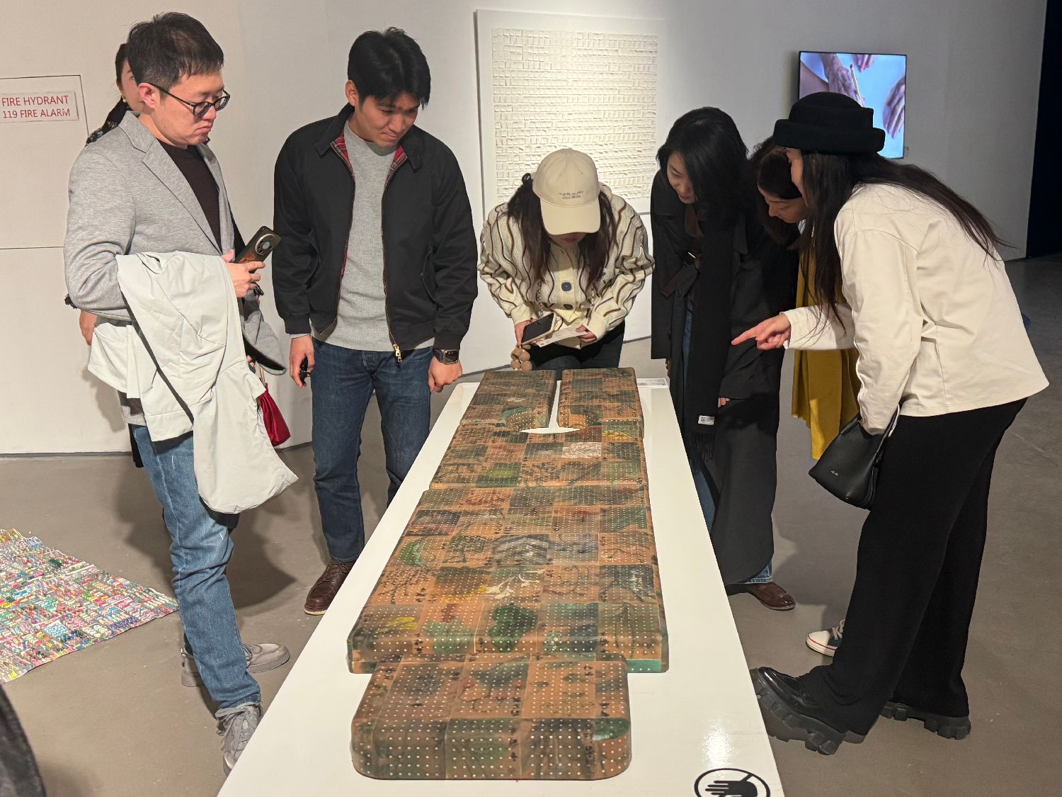 11月22日,“延迟的边界:中西女性艺术家与收藏家的对话”展览在今日美术馆展出。图为现场观众观看中国艺术家作品。(朴落沐/摄)